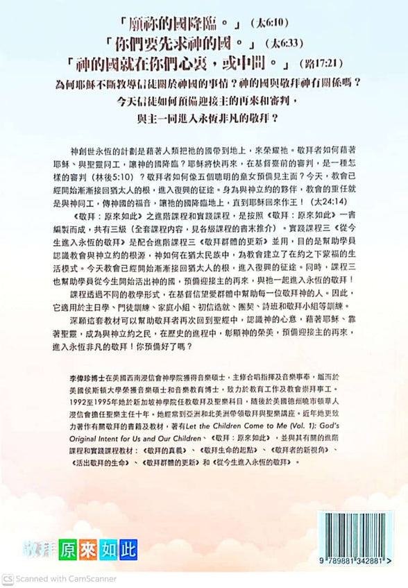 《敬拜原來如此》訓練課程,是按照《敬拜原來如此》一書,並加上相應的補充材料編製而成。訓練課程共有三級,每一級包括有進階課程和實踐課程。進階課程的内容取自聖經中敬拜的重要觀念,分層次地教導學員;實踐課程主要是幫助學員應用,並活出進階課程裏的真理。